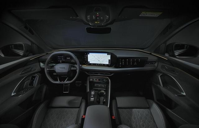 车身线条的设计则是奥迪家族美学的完美传承与创新。一汽奥迪Q5L从Q7继承了气势磅礴的前脸比例,宽大的八边形格栅与锐利的灯组形成强烈视觉冲击,彰显豪华SUV的雄浑气场;从A7沿袭的“三线合一”设计,则让车身侧面更具层次感——Coupe顶线从B柱后缓缓下滑,营造出溜背式的灵动姿态;贯穿式腰线从前翼子板延伸至尾灯,勾勒出车身的肌肉感与力量感;光影裙线则在车门下方形成微妙的曲面变化,随光线角度呈现不同光影效果,让静态车身充满动态美感。这种“硬派动感+优雅气质”的双重性格,让一汽奥迪Q5L既能胜任商务场合的庄重,又能适配休闲出行的活力。